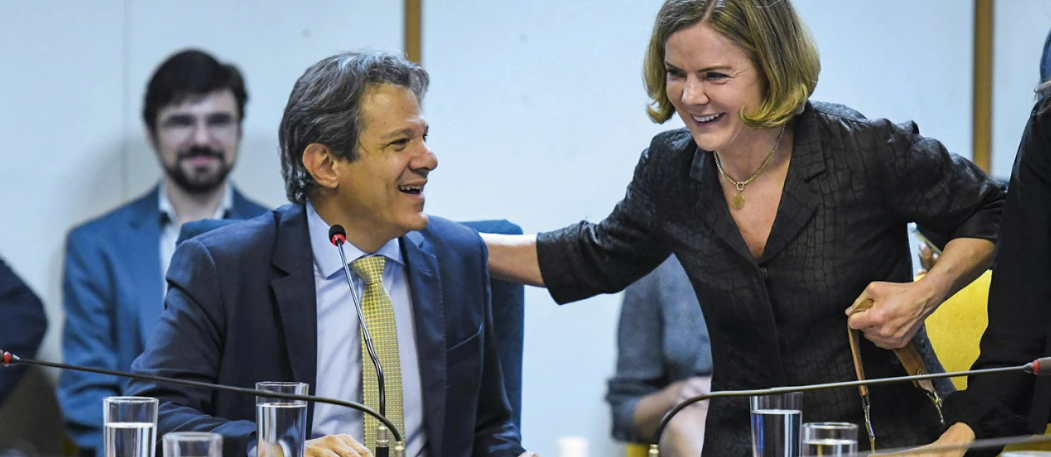 Fernando Haddad e Gleisi Hoffmann trocaram afagos hoje em audiência na Câmara. Segundo fontes que acompanham de perto a relação (por vezes conflituosa entre os dois caciques petistas), melhorou muito o clima entre eles nos últimos dias, apesar das divergências quanto ao arcabouço fiscal. De acordo com estas fontes, as maiores resistências internas ao novo marco fiscal não partiram da presidente do PT, mas de um grupo limitado de deputados. Gleisi tem repetido a ordem de Lula de que o PT pode discutir o projeto, mas tem que votar unido a favor do arcabouço.